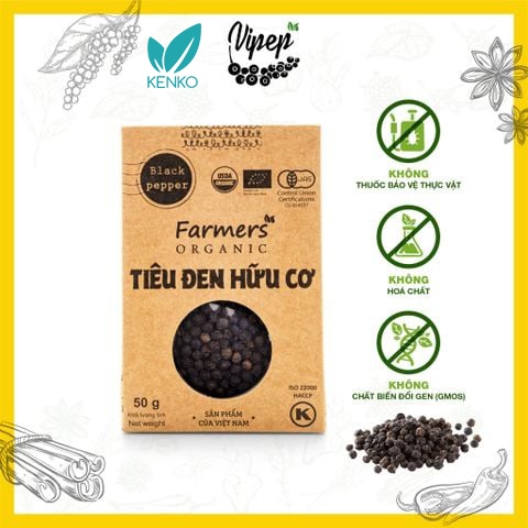 Tên sản phẩm: Tiêu Đen Hạt Farmers' Organic Vipep Túi Giấy 50g