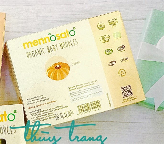 Mì sợi hữu cơ cho bé 7m+ vị bí ngô mennosato 200g