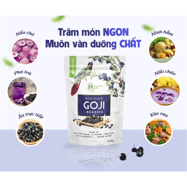 Khác với kỷ tử đỏ, hắc kỷ tử là dược liệu mọc ở hoang dã và cũng là loại kỷ tử quý hiếm nhất hiện nay, được ví như “thần dược trời ban” hay “món quà quý giá” mà thiên nhiên, đất trời ban tặng. Organic Life là thương hiệu đầu tiên tại Việt Nam tự tay chọn lọc, thu hoạch từ tự nhiên và phơi sấy, đóng gói hắc kỷ tử theo đúng quy định tiêu chuẩn hữu cơ, giữ trọn tinh túy tự nhiên mang đến người dùng toàn vẹn công năng tuyệt vời của dược liệu này.- Xuất xứ: Tân Cương - Trung Quốc.- Chứng nhận hữu cơ USDA - Chứng nhận hữu cơ Châu Âu- Không biến đổi gen, thuần chay1. Thành phần: hắc kỷ hữu cơ2. Công dụng:Hắc Kỷ Tử có tác dụng rất tuyệt vời đối với sức khỏe con người như bổ can thận, tốt cho tim mạch, chống oxy hóa, tăng cường hệ miễn dịch, ngăn ngừa ung thư, dưỡng da khỏe mạnh, bảo về sức khỏe đôi mắt, giải độc gan và ổn định đường huyết... 3. Hướng dẫn sử dụng- Đối với việc pha trà• Chuẩn bị: Hạt Kỷ tử đen sấy khô khoảng 3-5 gram, nước đun sôi trên 90 độ, bình nước hoặc ấm pha trà. - Đối với việc nấu ăn• Ngâm trái hắc kỷ tử sấy khô với nước đến khi trái nở rồi rửa sạch và cho vào hầm.• Sử dụng phổ biến trong các món chè, canh, món hầm.4. Cam kết tại Organic Life- 100% sản phẩm nhập khẩu chính hãng, có nguồn gốc xuất xứ minh bạch- Các thành phần in trên bao bì đã được kiểm định và có tính xác thực, được phép lưu hành tại thị trường Việt Nam- Quy trình chế biến đảm bảo theo Tiêu chuẩn vệ sinh An toàn thực phẩm Quốc tế5. Chính sách tại Organic Life- Miễn phí đổi trả 10 ngày đối với trường hợp:+ Sản phẩm thực tế không giống ảnh & mô tả+ Hàng lỗi, mốc, hỏng khổng thể sử dụng- Giao hàng hỏa tốc- Chăm sóc trọn đời: hỗ trợ chăm sóc khách hàng nhanh chóng, tận tình và vui vẻVới các trường hợp thiếu hàng hay thắc mắc về sản phẩm bạn hãy liên hệ ORGANIC LIFE để được tư vấn và hỗ trợ thêm nhé!6. Về Organic Life- Organic Life nhập khẩu chính ngạch và minh bạch, phân phối các sản phẩm hữu cơ đạt tiêu chuẩn Châu Âu. Đặc biệt là nhà phân phối độc quyền thương hiệu Organic cao cấp của tập đoàn Sottolestelle (Italia) tại thị trường Việt Nam.- Sống hữu cơ. Chọn Organic Life.#organiclife #songhuuco #organic #vegan #taodo #taotau #cheduongnhan #huuco #kytu #cautudo #hackytu